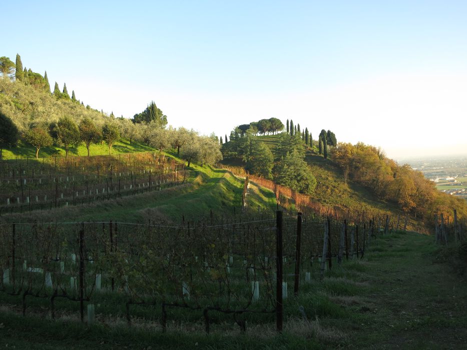 Wenn man den Hang des Hügels San Benedetto auf die Plateaus hinaufsteigt, kann man heute nur noch einige behauene Steine sehen, die einen ungeordneten Haufen bilden: Das ist das einzige Überbleibsel des Klosters und der Kirche des Hl. Benedikt. Diese werden im Testament eines gewissen Zilio genannt, der 1253 eine „milde Gabe von einhundert soldi“ hinterließ. Von dem Moment an werden das Klosterleben und die Namen seiner Rektoren regelmäßig anlässlich der häufigen Pastoralreisen der Bischöfe von Padua (denen die Klosteranlage unterstellt war) in Dokumenten belegt, in denen der Erhaltungszustand sowie die wirtschaftliche Situation notiert wurden. 1488 stellte Bischof Pietro Barozzi fest, dass vom Kloster keine Spur mehr vorhanden war und dass sich die Kirche in ernsthaftem Verfall befand.