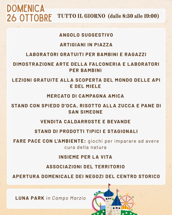 I agree I disagreeThe ancient festival known as Fiera di San Simeone takes place every last Sunday of October. The festival is dedicated to patron Saint of Marostica and it is also sort of a thanksgiving celebration at the end of the agricultural season. Markets of typical products, music and folk dances celebrate the rite of the blessing of autumn fruits, tractors and transhumance. The Fiera di San Simeone festival is still strongly linked with the ancient tradition of transhumance that in our days too takes place along the Arzeron della Regina, the flock road, which crosses Marostica going through Piazza Ortigara square and continues along the Sejo path until the hamlet of Crosara, then heading for the pastures of the Asiago Plateau. The rite of transhumance is recalled every year, during the festival, with a parade of Rendena cows along Corso G. Mazzini, attracting the curiosity and enthusiasm of adults and children alike.
