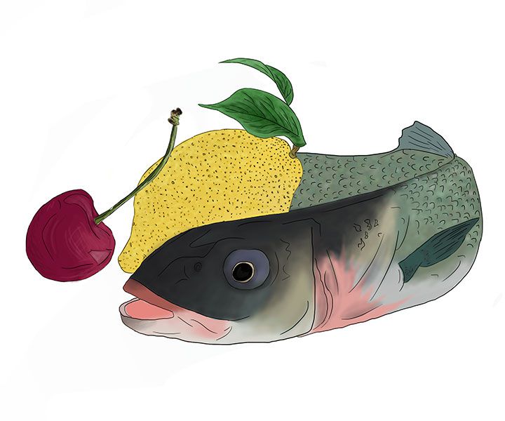 Carpaccio of sea bass with crudité of Marostica cherries PGI