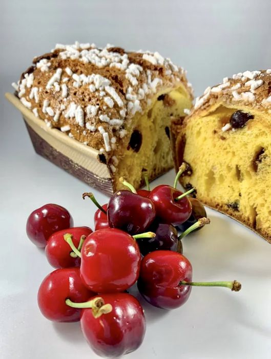 in Primavera, focaccia dolce lievitata naturalmente con all’interno ciliegie locali.
