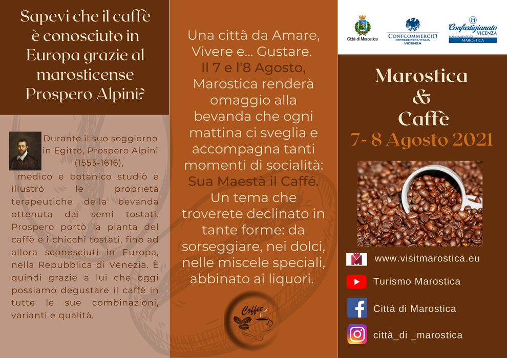 Il 7 e l'8 Agosto, Marostica renderà omaggio alla bevanda che ogni mattina ci sveglia e accompagna tanti momenti di socialità: Sua Maestà il caffé. Un tema che troverete declinato in tante forme: da sorseggiare, nei dolci, nelle miscele speciali, abbinato ai liquori.