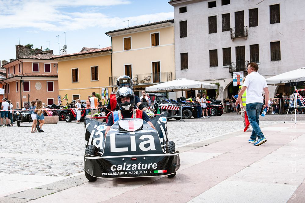 Come mezzo per la disfida fu scelto il “careto” di legno locale, costituito da tre assi longitudinali, due assi trasversali, uno a mo’ di timone, comandato con uno spago fissato alle estremità, con quattro ruote di legno rivestite di gomma per evitare l’usura.