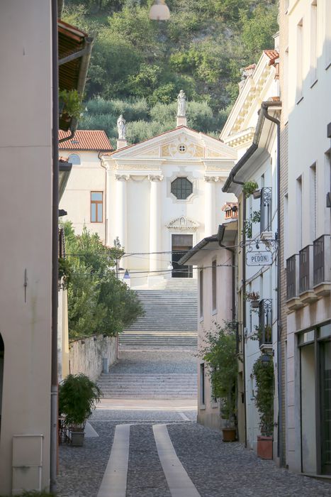 Conduce alla Chiesa dei Carmini. È la scalinata della “nostra rustica Trinità dei monti… È cominciata in quell’anno 1619 la conversazione fra le tre facciate: di S. Antonio (1383 che ha mutato volto nel 1730) della Scoletta (1486) e dei Carmini (1619): creazione di tre secoli e di un’unica fede per un ambiente di pace e di bellezza che continua fra il verde dei broli uscente dai muri delle silenziose vie Bordalocco e Rialto” (Mario Consolaro).