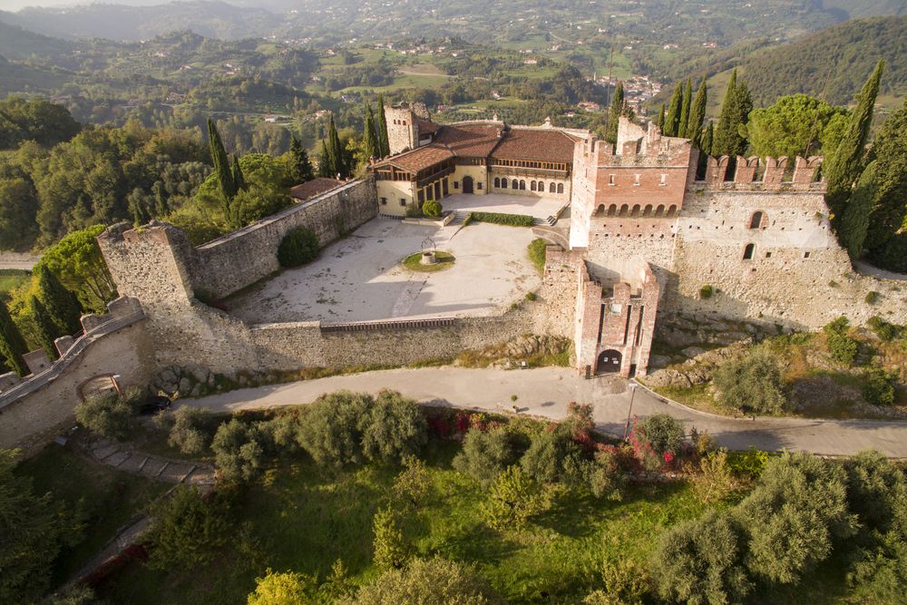 Lo stemma lapideo con la raffigurazione della “scala”, incastonato sulla facciata del rivellino della porta d’ingresso al castello vero e proprio prospiciente la pianura, testimonia nei secoli la paternità scaligera della fortezza.
