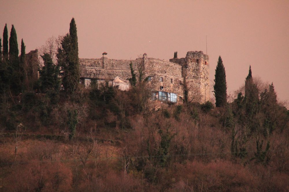 Edificato su una precedente torre, di cui si ha notizia in documenti duecenteschi, risale con ogni probabilità alla Signoria di Cansignorio della Scala (1340-1375), grande costruttore di opere difensive scaligere. Questo manufatto alle origini aveva una struttura poderosa, ora in gran parte diroccata, con quattro torri angolari ed un alto mastio, del quale ci rimangono alcuni lacerti murari, così come per buona parte del recinto sul lato sud.